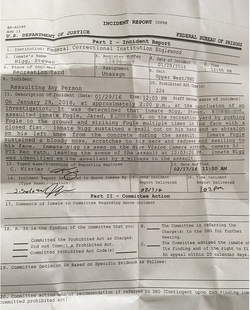 On January 29, 2016, at approximately 2:00 p.m., Steve Nigg assaulted Jared Fogle at the recreation yard where both were serving prison sentences.