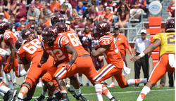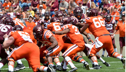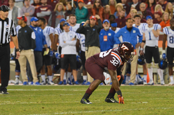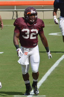 He plays for Virginia Tech Hokies and is affiliated with the National Collegiate Athletic Association.
