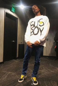 Citation Linkywqaugeunhowzrcj.public.blob.vercel-storage.comRapper ASAP Rocky wearing Sus Boy merch