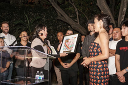 Susan Hirasuna receives a token of appreciation from Roselma Samala for her work as Culinary Chair of the CPAF