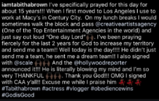 She announced on her Instagram that she inked a deal with Creative Artists Agency.