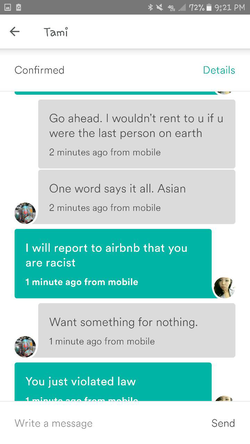 In July 2017, Barker was ordered to pay a $5,000 penalty and take a course on Asian-American culture for her discrimination, based on a California law that penalizes those who racially discriminate on Airbnb.