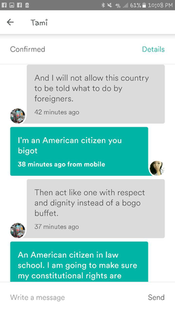 Asian""it's why we have Trump""And I will not allow this country to be told what to do by foreigners."