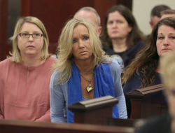 Photo of Tami Bella sitting up front during the trial concerning the murder of daughter Nicole Lovell.