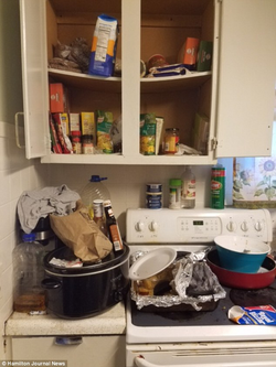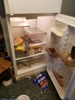 They report that the home was full of garbage, cat urine and liquor bottles.