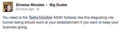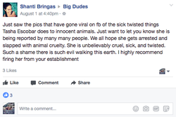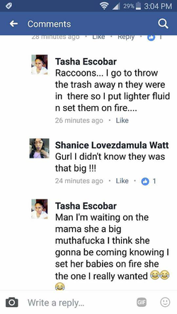 Tasha Escobar's social media post revealing the incineration of the raccoons