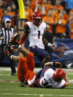 He plays for Arizona Wildcats and is affiliated with the National Collegiate Athletic Association.