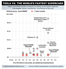 The all-electric Tesla 100kWH Model S is the world's fastest production vehicle.