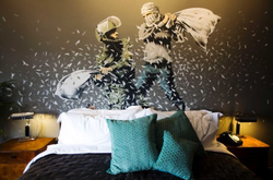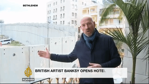 The Walled Off Hotel is a Hotel in Bethlehem that overlooks the wall separating Israel and Palestine in occupied West Bank. It was financed by renowned Anonymous artist, Banksy, who also collaborated on its design as his vision was to have a hotel that invites people from both sides of the conflict. [0]