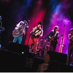 The band’s sound Is a colorful collision of ragged rock, skewed eastern european beats, ska, sultry tangos and other brands of unclassifiable musical mayhem.