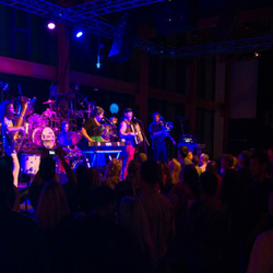 So instead they move forth doing what they do best; cascading onto the stage in a breathtaking explosion of sound and color that’s equal parts unruly vaudeville, ebullient world beat band and three ring circus.