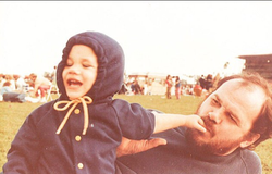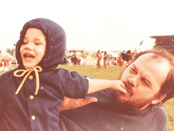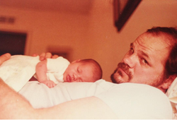 Thomas Markle Sr. with baby, Meghan Markle, on his tummy.