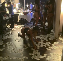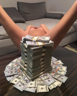 Photo of Tony Toutouni's stack of money covering a woman's body parts.