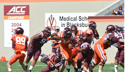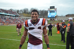 He plays for Virginia Tech Hokies and is affiliated with the National Collegiate Athletic Association.