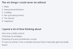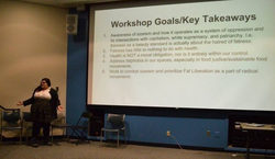 From here, she developed feminist, fat liberation, anti-racist, and anti-capitalist perspectives, which she believes all play an integral role in working towards collective liberation.