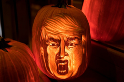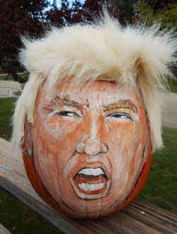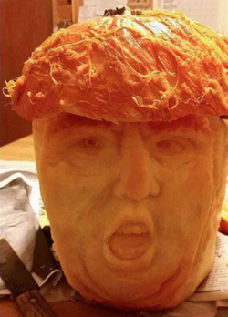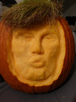 A trumpkin is a pumpkin carved to resemble 2016 republican presidential nominee Donald Trump.