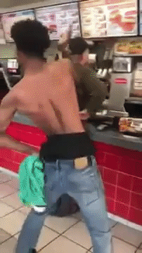 Tyreil Jones dancing inside of a fast-food restaurant.