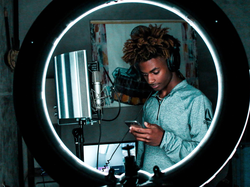 Tyreil Jones waiting for a scheduled meeting inside of Warner Brothers headquarters.