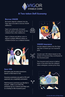 The Vigor Protocol is a Defi (decentralized finance) two-token Stablecoin DAC (Decentralized Autonomous Community) built on the EOS blockchain. [1]