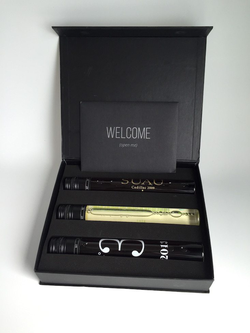 [1]The three tubes of wine are curated by a team of specialists from around the world.