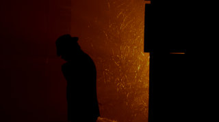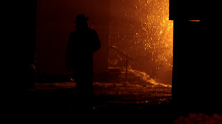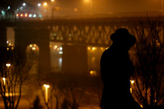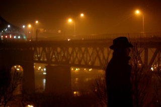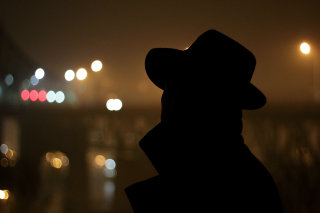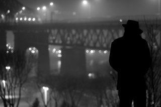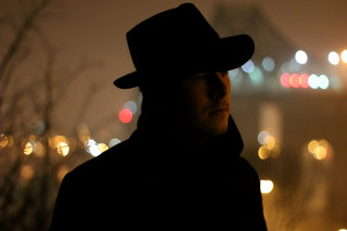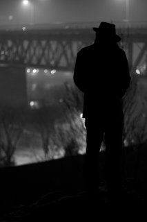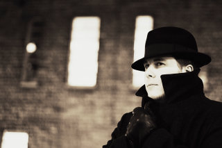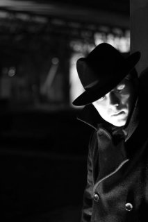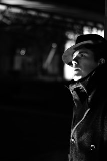 Moving to Edison, New Jersey, a township named after one of cinema's most prominent inventors, Thomas Edison, was a revelation for Julien who lived near the Thomas Alva Edison Memorial Tower and Museum.[150] The house in which Julien grew up also appeared in the 2003 film School of Rock, which was partly filmed in Edison, New Jersey.[151] Growing up connected to the film industry, Julien started watching classic films at an early age and has often cited that Vision Éternel's music was more influenced by the cinematic visuals of film noir (and neo-noir), expressionism and drama, than by other bands and musicians.[12] Directors such as Alfred Hitchcock, Douglas Sirk, Henri-Georges Clouzot, Jean-Pierre Melville, Jules Dassin, Billy Wilder, Fritz Lang, F. W. Murnau, Woody Allen, Henry Hathaway, Robert Siodmak and Otto Preminger; and cinematographers such as James Wong Howe, Robert Burks, John Alton, Joseph MacDonald, Mutz Greenbaum, Elwood Bredell, Nicholas Musuraca, Stanley Cortez, Norbert Brodine, Robert Krasker, Harry J. Wild, Arthur Edeson and Joseph Valentine have often been cited.[12][13][14][113][152][153] Photographer Yousuf Karsh's distinctive style has also been credited for the visual presentation of Vision Éternel in photo shoots, with Julien often dressed in a fedora hat and turned-up overcoat, depicted in stark black and white contrasts of shadow and light.[12][154][155][156]