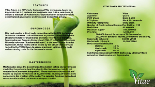 The Vitae (VITAE) has the following key properties that make its blockchain comfortable for its pursuits, purposes, and prospective users: