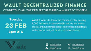 Wault Finance (WAULT), a decentralized finance protocol, is a Binance supported hub that employs the contributions and works of developers to its open-source codes. with its aim of being a user-friendly yield generator, Wault Finance's decisions for the protocol development will be governed by the $WAULT holders.[4]