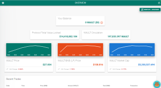 The Dashboard offers detailed, yet simple information to its users, beginning from the users' $WAULT balance, to the Protocol Total Value Locked, amount of $WAULT tokens in Circulation, $WAULT Price, the user's order, and the user's transactions.