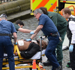 The attacker then rushed the gates of the Houses of Parliament with two knives. He fatally stabbed a police officer. When the attacker tried to attack a second police officer, he was then shot by police.