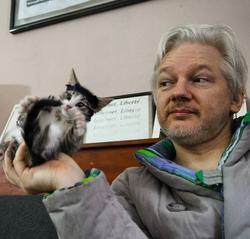 Embassy Cat (Wikileaks Cat) is Julian Assange's pet cat who resides with him at the Embassy of Ecuador, London. He is a "Whiskerblower" who specializes in counter-purrveillance. [1]