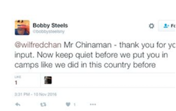 [4] [-1]In a tweet, Chan put together a college of racist comments directed at him with the caption βthis is what Trump voters think of me.β