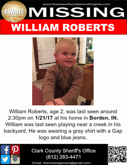 William G. Roberts (2014-January 22, 2017) 2-year-old child from Borden, Indiana in Clark County, Indiana.