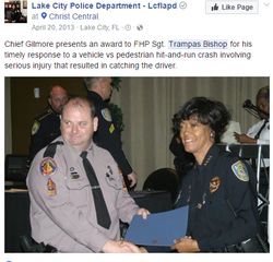 William Trampas Bishop was a Master Sergeant with the Florida Highway Patrol and had served with the force for 30 years. In April, 2013 he received an award from Chief Gilmore, for catching a hit and run driver. He had also served as a Corporal E-4 with Military Police Corps (US), the law enforcement arm of the U.S. Army. William Trampas Bishop had trained at Fort McClellan, Alabama while with the Army. [1]