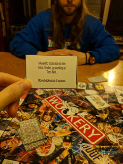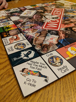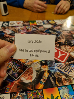 Basically the way the game works is you roll a dice to move around the board and pick up "heady cards" along the way which have funny things on em like "went to taco bell to grow weed but ended up working at taco bell instead, move back 5 spaces" and the goal is to pass start and collect "wonky cards" which are tongue twisters you have to say correctly and fast or you drink.