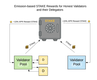 To create incentives for validators though token emissions, xDAI Chain uses STAKE.