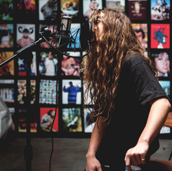 Yung Pinch in the studio singing in the booth.