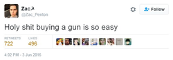 Citation Linkywqaugeunhowzrcj.public.blob.vercel-storage.com"Holy shit buying a gun is so easy" - Zac's tweet on June 3 at 4:02 pm