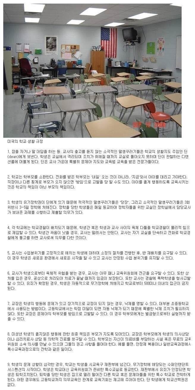 28:10. 미국의 경우, 학생은 수업분위기를 해치는 경우, 교사는 학생의 재배치를 요구할 수 있다.