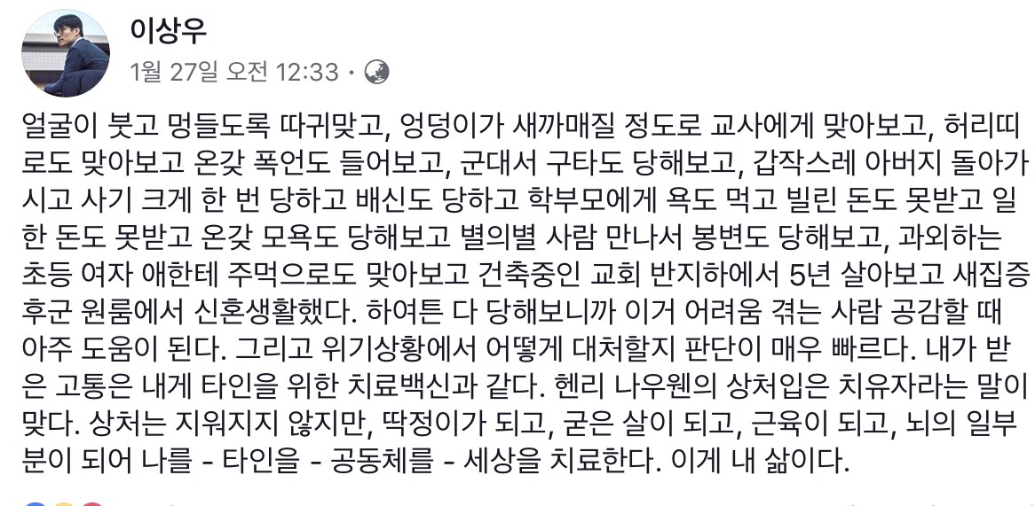 2:20. 얼마전 공유하신 흑역사. 인간 이상우는 이해하는 시발점.