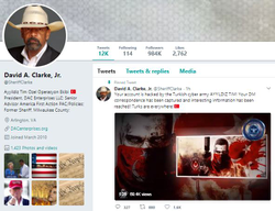 On January 22, 2018 Sara Carter and Sheriff David Clarke both had their Twitter accounts hacked by Turkish Nationalists. [10]